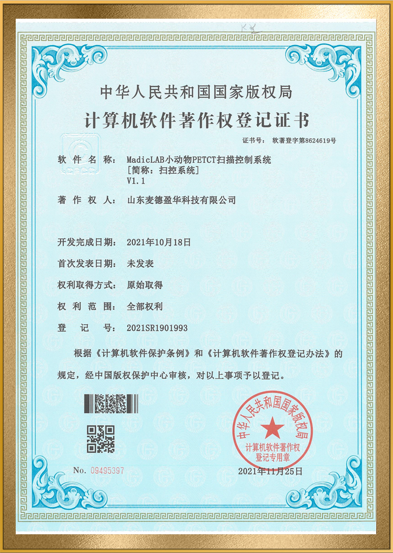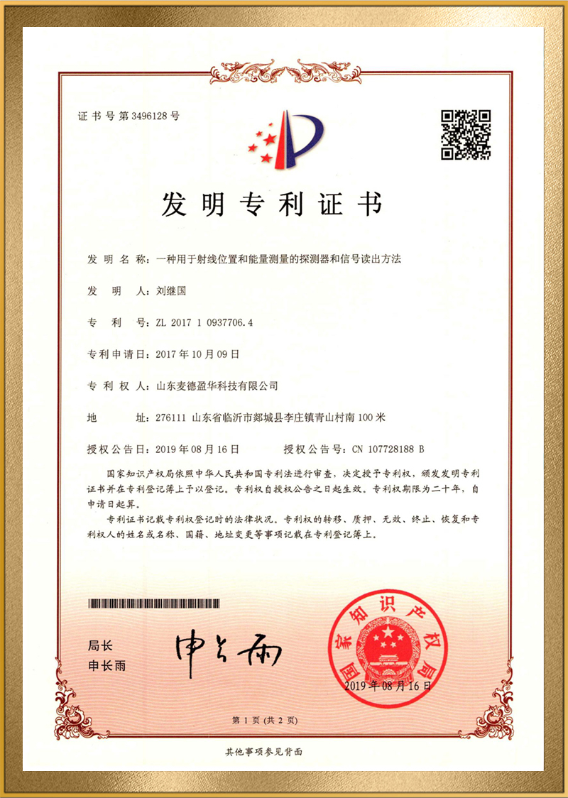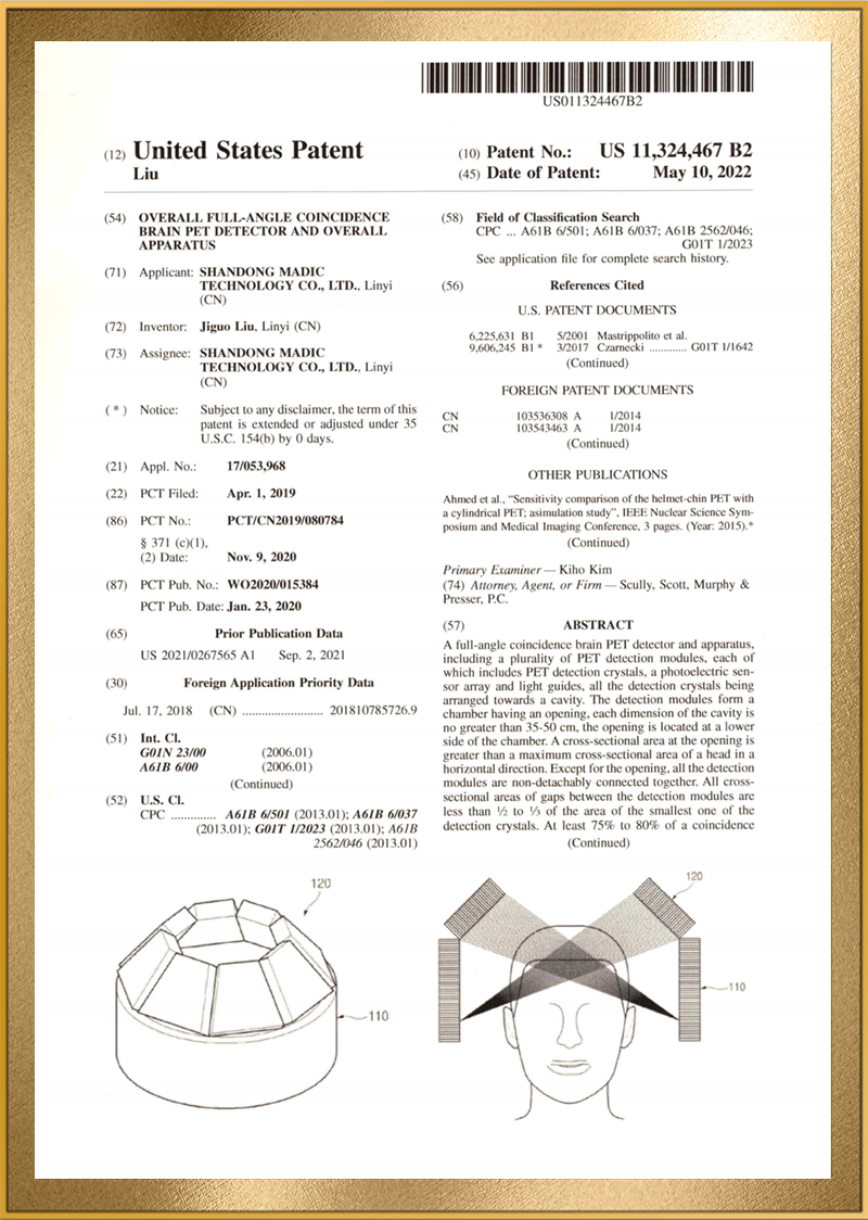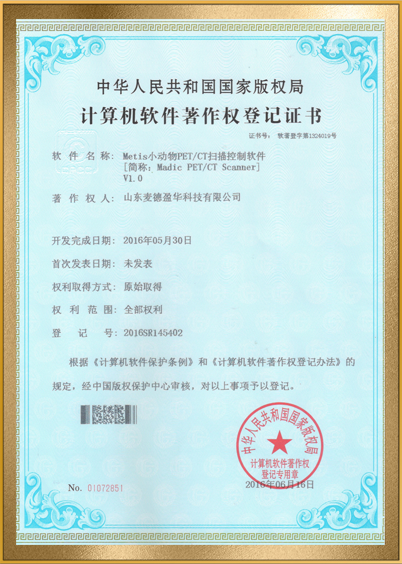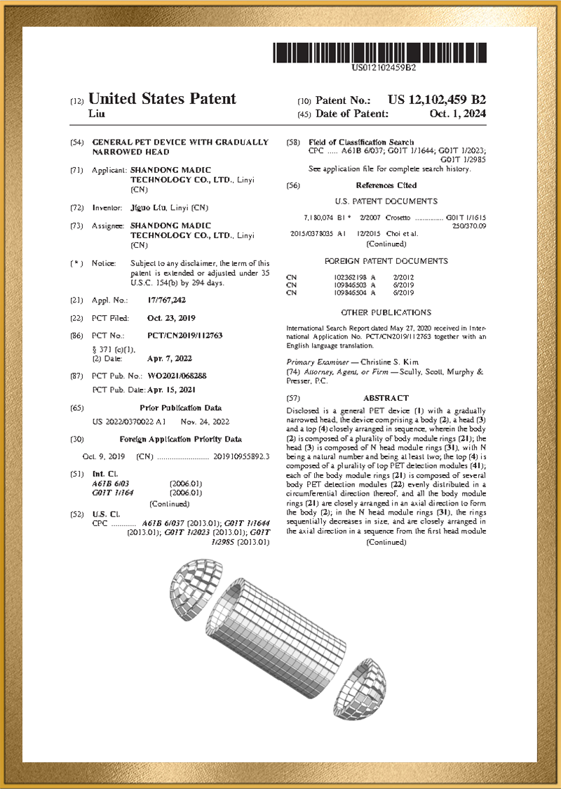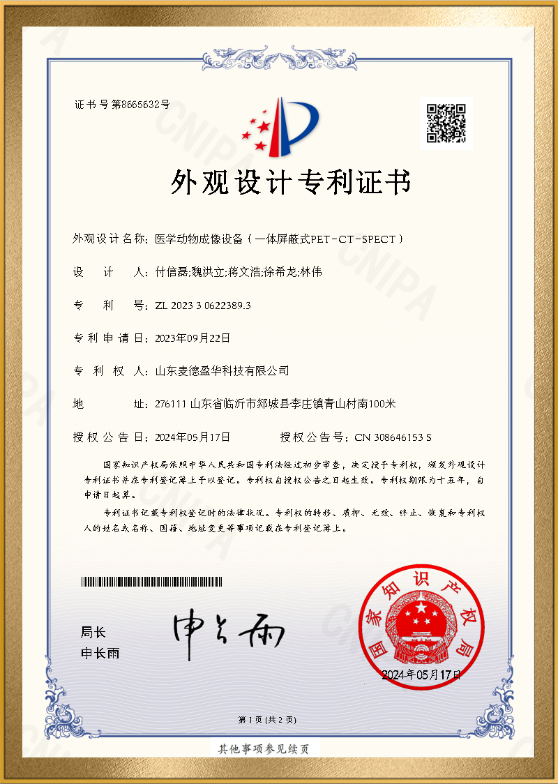 麦德盈华是国家高新技术企业,省级“专精特新"企业,公司拥有山东省“一企一技术”研发中心,临沂市PET系统开发及应用工程技术研究中心,PET系统开发及应用企业重点实验室,并创建了山东省高等学校肿瘤标志物检测技术、装备及诊疗一体化协同创新中心。申请发明专利百余件,其中PCT十余件,覆盖中国、日本、美国、欧盟等国家。