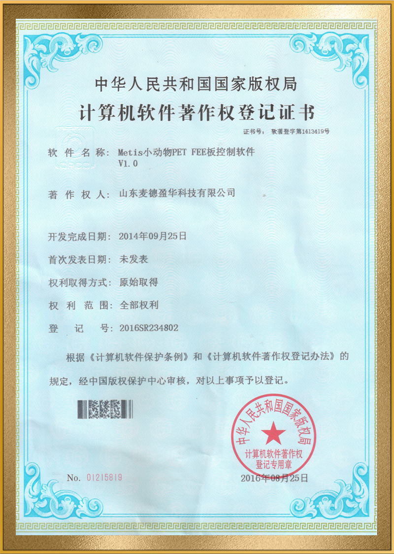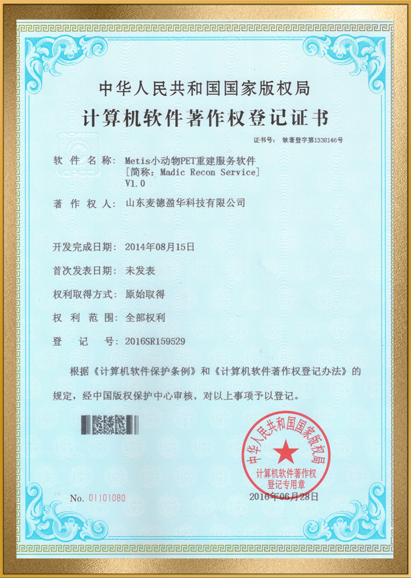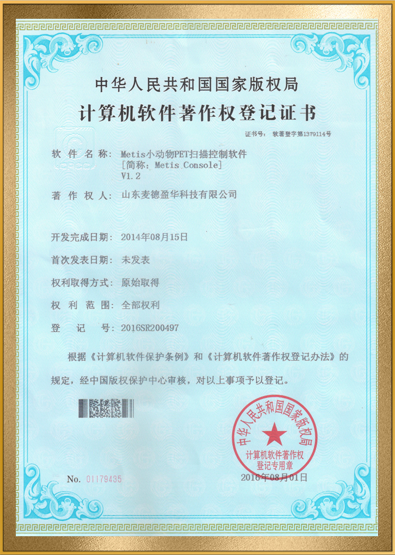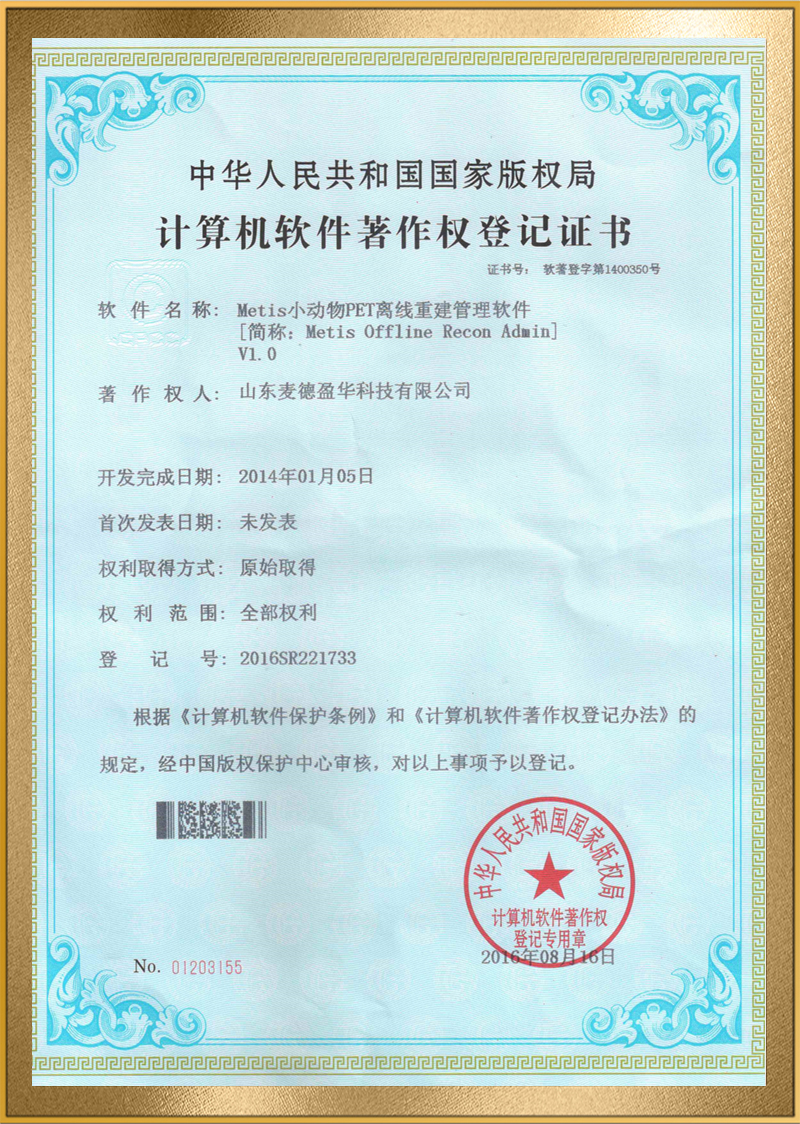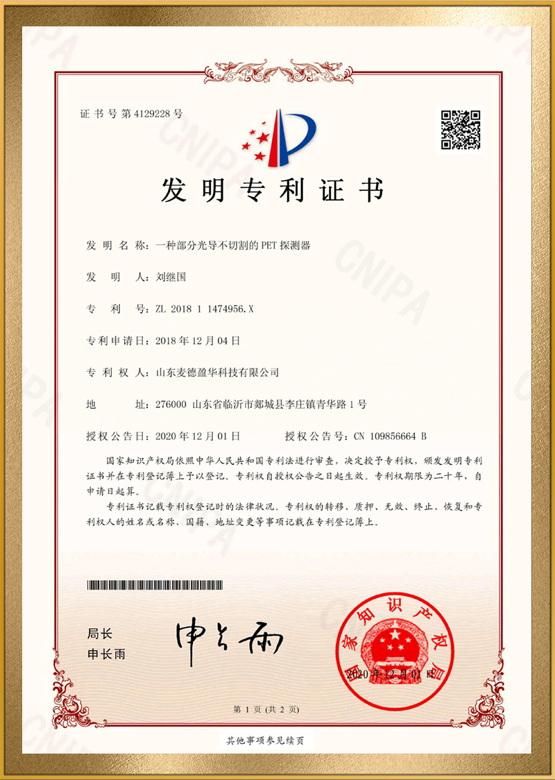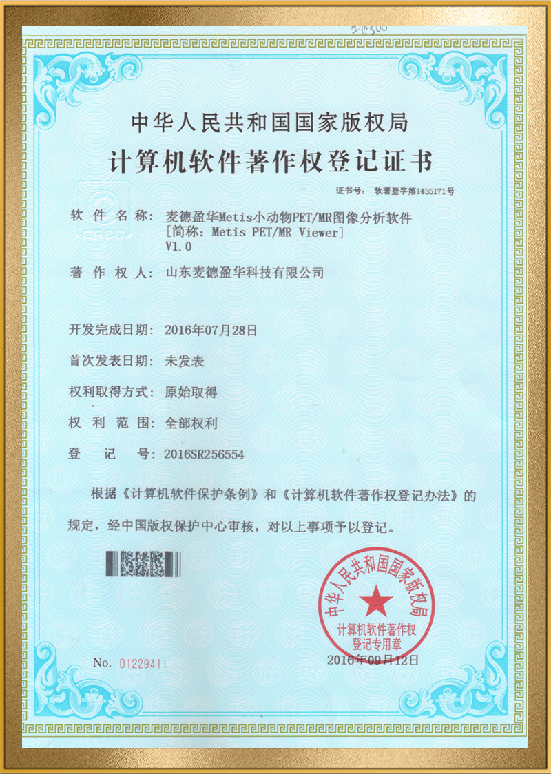 麦德盈华是国家高新技术企业,省级“专精特新"企业,公司拥有山东省“一企一技术”研发中心,临沂市PET系统开发及应用工程技术研究中心,PET系统开发及应用企业重点实验室,并创建了山东省高等学校肿瘤标志物检测技术、装备及诊疗一体化协同创新中心。申请发明专利百余件,其中PCT十余件,覆盖中国、日本、美国、欧盟等国家。