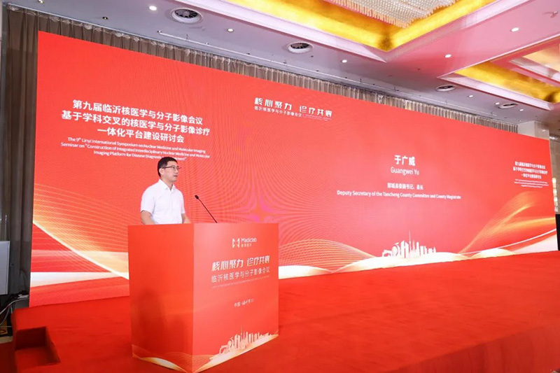 郯城县县委副书记、县长于广威作为会议支持方代表致辞。他介绍了“银杏之乡”郯城县在医疗器械产业的发展情况,并对麦德盈华公司在核医学影像技术领域的创新成就给予高度评价:“刘继国博士带领团队在我县默默耕耘十余年,现已成为拥有百余项专利的国家级高新技术企业。”于广威热情邀请专家们深入郯城,感受3000年文化底蕴与现代产业活力的交融。